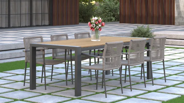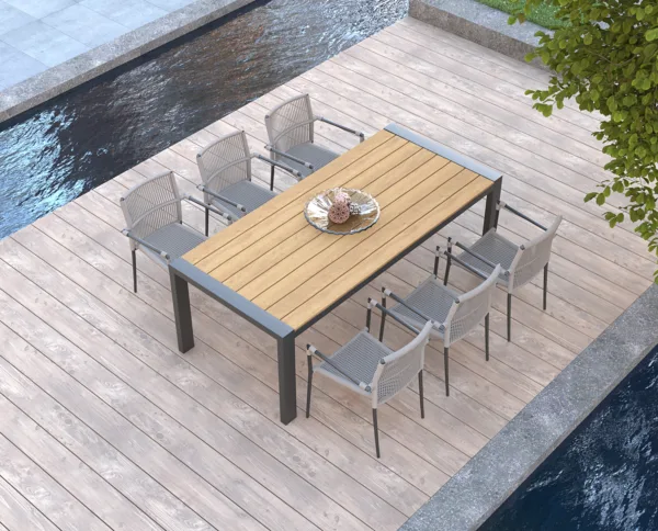 Teak furniture is an excellent choice for outdoor living and with regular maintenance will provide years of loyal service. Natural teak as well as touch-up kits designed to match our teak finishes. Natural Teak – Our Natural finish highlights the beauty and grain of solid teak. Due to natural variations in the wood, each product and finish may vary slightly. When exposed to sun and rain, the color of Natural teak will soften to a handsome silvery-grey shade depending on the amount of sun exposure.