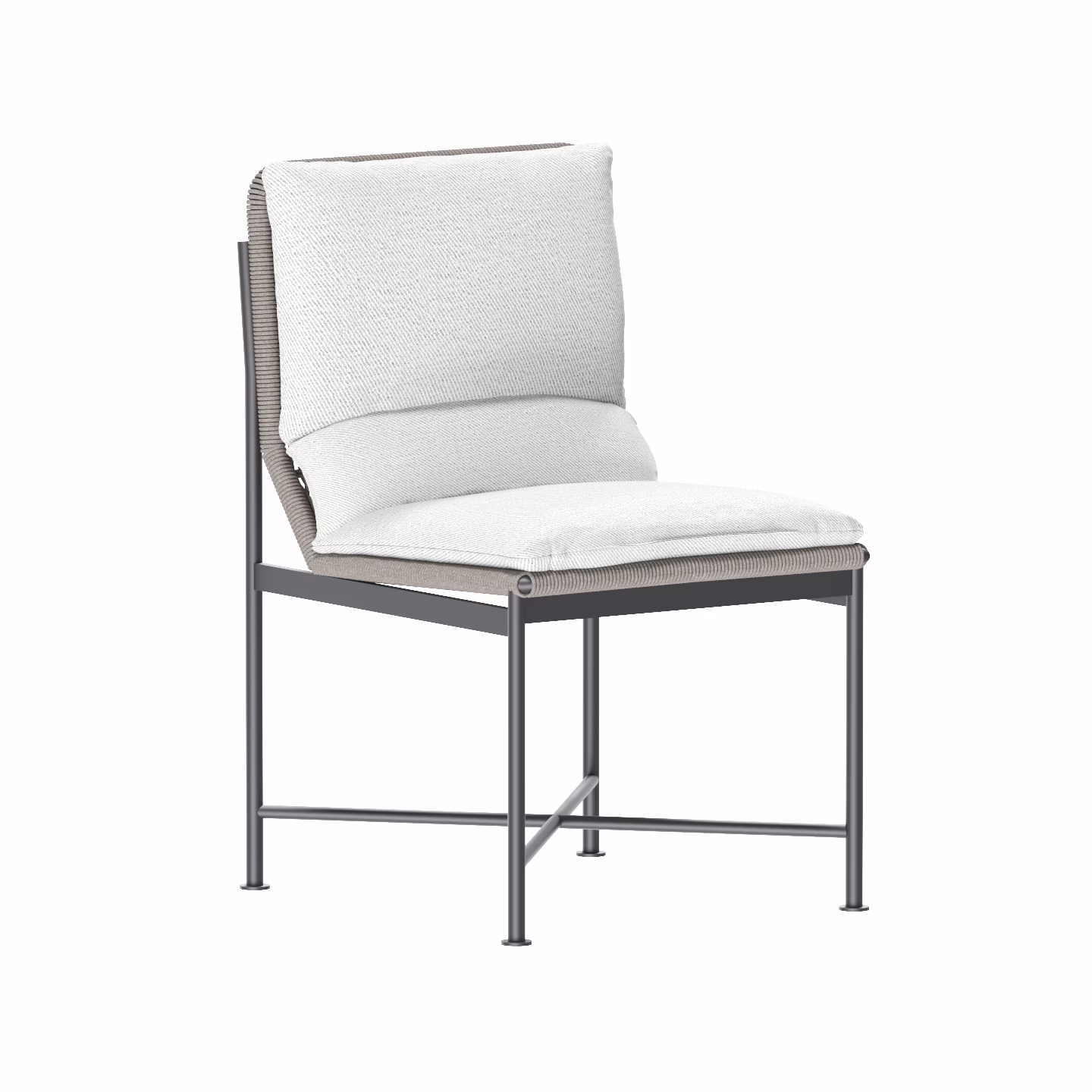 The Emellie Side chair is a modern design that offers both style and comfort. Its angular backrest adds extra comfort, making it exceptionally cozy. Made with outdoor rope and powder-coated aluminum, this chair is built to withstand rust and can be used outdoors regardless of the weather.